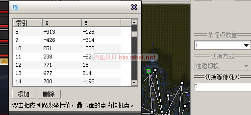 单一点挂机只需选取当前坐标就可以了,循环挂机点使用本机挂机地点,编辑几个挂机位置,时间自己设定