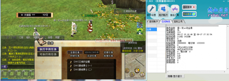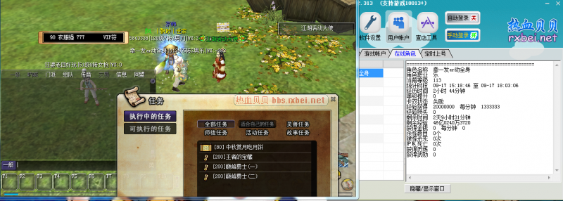 游戏里的截图任务栏里是没有这个维护的 “中秋赏月吃月饼” 的任务的。 图片:QQ图片20190917173505.png 有血兽状态时,是不能领取任务的,所以我把血兽给消耗掉,接着再重新接任务。 图片:QQ图片20190917180326.png 其实在之前的那个 “七夕浪漫约会” 的活动任务也可以这样操作领取。 具体操作:在交任务物的同时,并快速的关闭任务对话窗口(也就是按下键盘的Esc键,手速要快)就可以做到得到血兽状态,但是任务栏里的任务还在,这时我们把任务放弃掉,然后等血兽状态消失后,再重新领取。就可以了。 友情提示:该操作只有使用贝贝辅助才可以做到。其实很多时候官方出的血兽活动任务都可以这样重复领取,如果说贝贝能把这个操作增加到辅助里,才真的算是福利。 |