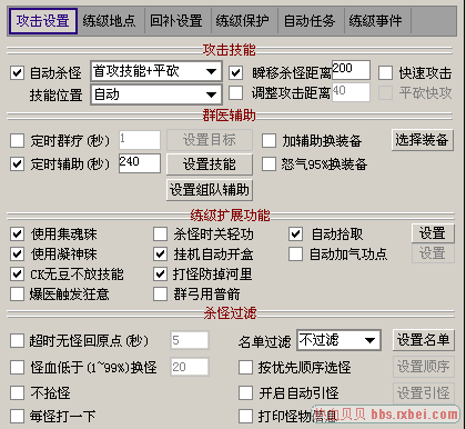 能让刺客更顺畅打怪。 另外,勾选瞬移后偶尔会出现卡坐标的现象,PS:刺客没勾快速攻击和平砍快攻。
