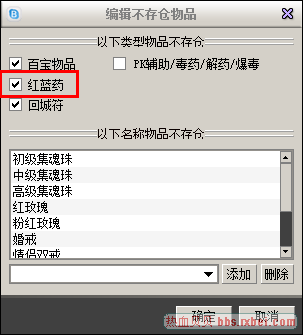 我把不存仓物品那的 红蓝取消了可又会把全部药都存了