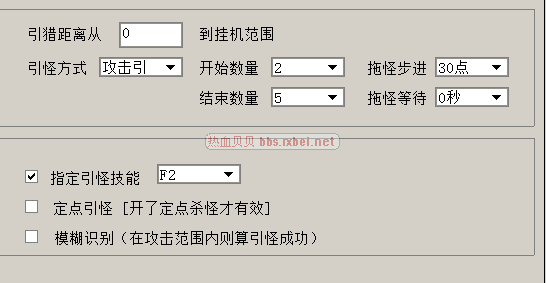 定点引怪不能勾,调整攻击距离不勾,定点杀怪打勾就可以。F2为群技能。