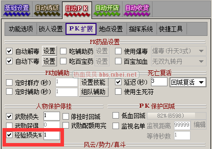 PK模式下 贝贝不会区分怪咬死还是给刀琴反死 导致1%经验损失不会停挂