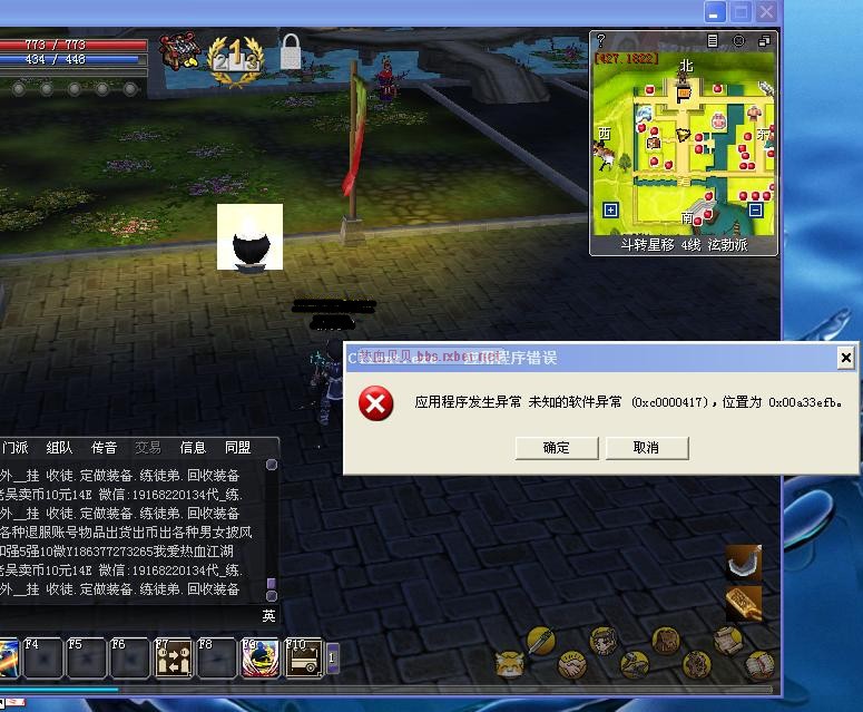 重新下载安装了热血江湖客户端、热血贝贝2.438,还是不行。进入游戏后,任务栏显示的是游戏账户名而不是角色名称;挂也不能自动出来。按F11呼挂,游戏就秒退了。