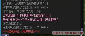 版主好 咱贝贝挂的 自动领新手门主的5级九转任务不好使 我在练级事件里设置自动领九转任务 说找不到指定NPC 求解决
