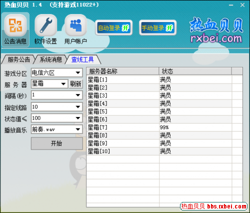指定区服线路,设置1秒刷新 点“开始“