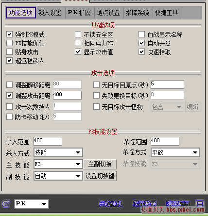 站在对方势力门口PK 要怎么设置 我怎么设置都是反应迟缓,不怎么打人,功能选项这里要怎么设置才好,杀人范围,调整攻击距离 多少最佳 请求指点