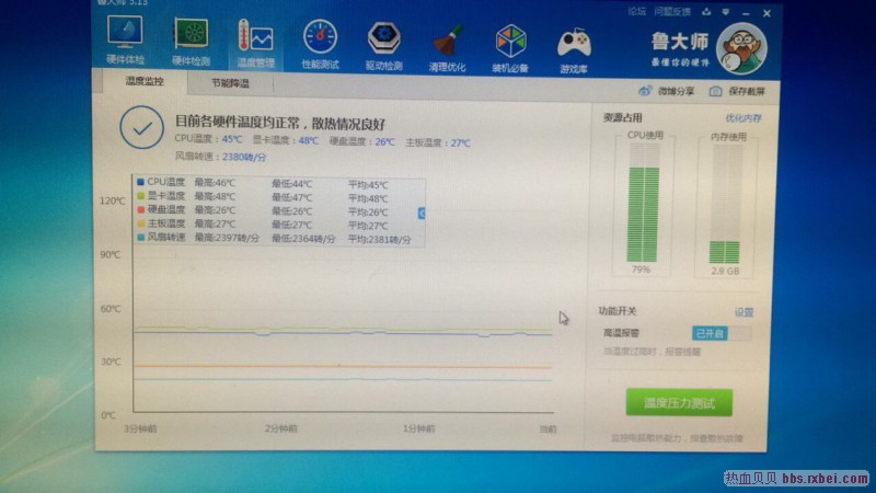 这是我电脑配置,现在13开,电脑CUP使用不过一个好不隐藏。使用率95%,而且游戏画面慢慢的感觉,不是卡的那种,我在纳闷,这个配置应该可以开30到40开才对,怎么开13开,CPU使用这么高,我用的是贝贝挂,CPU优化2.内存优化,如果CPU优化到4以上画面就不流畅了,如果CPU优化勾上选择不优化画面还流畅一点,但是CPU使用会很高,求高手帮忙解答一下。谢谢!急人啊。
