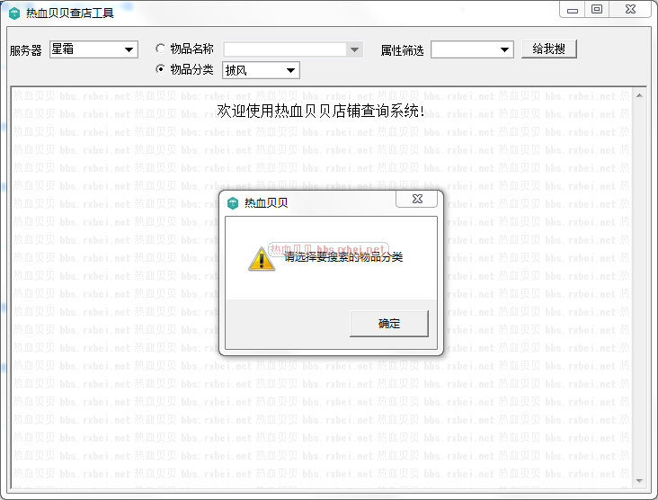 选好了区服和物品分类也提示请选择要搜索的物品分类如下图: