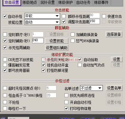 ”设置技能“打开截图,挂机地点那页也截图来