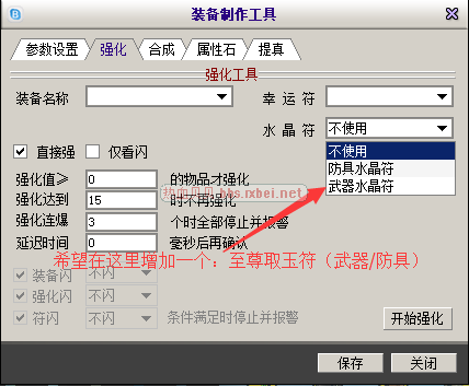 就是在强化那个工具里面,强化的等级上限改为15,使用的强化道具里面增加一个至尊取玉符(武器/防具)