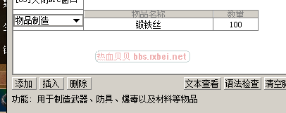 脚本物品制造这里,制造不了材料那个,我学习的武器方面,武器都可以找到,现在要偶锻铁丝,要手动做,找不到锻铁丝,手动输入锻铁丝不行。求添加,防具里面的材料也做不了。