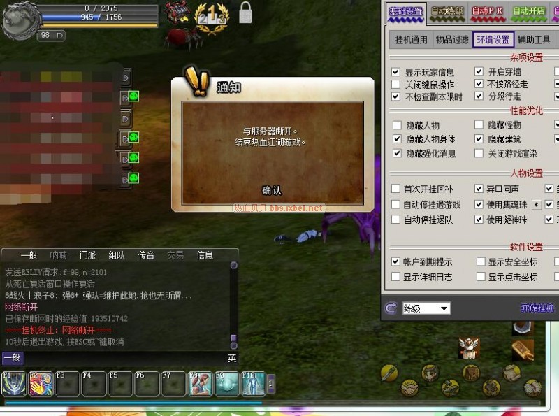 贝贝挂,游戏掉线不自动退出问题.求解决.新区开服就有这问题