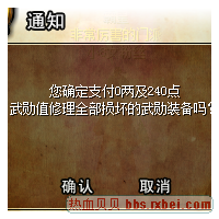 贝贝挂里有一键修理WX装备的选项,我在回补里设置自动修理WX装备,但是为什么出现提示框,请看图片。这个是否是贝贝的一个小缺点呢 希望管理能给个解决办法。为什么不能自动点确定呢