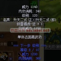 [图片][图片]我是122小卢一枚,这是我升天1.2的武功加点 [图片] [图片]升天1我主加的远程技能,升天2也主加了远程结果只有升天1近程武功才能加成到升天2武功上。[图片]请问是游戏出现了BUG,还是我武功加错点~!~!~!